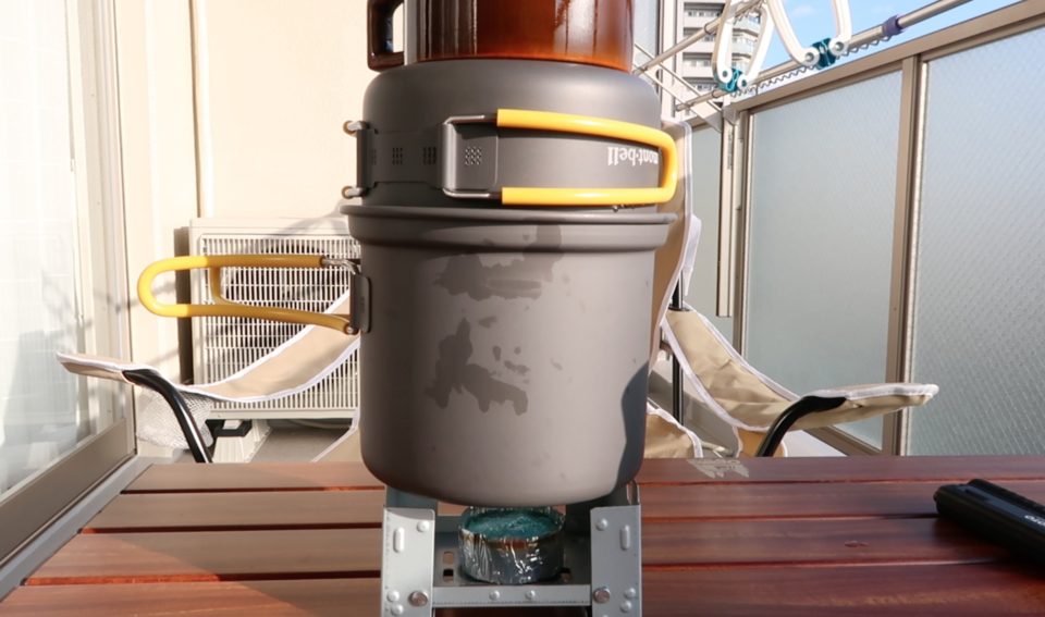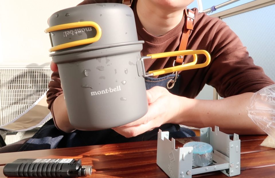 先日ベランダで初めてmont-bellのクッカーを使ってお米を炊いてみました。