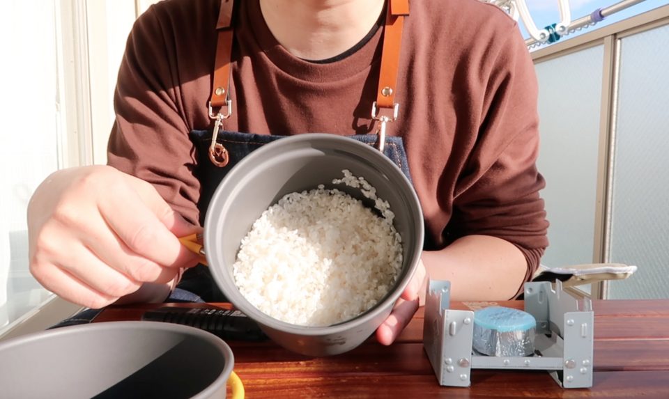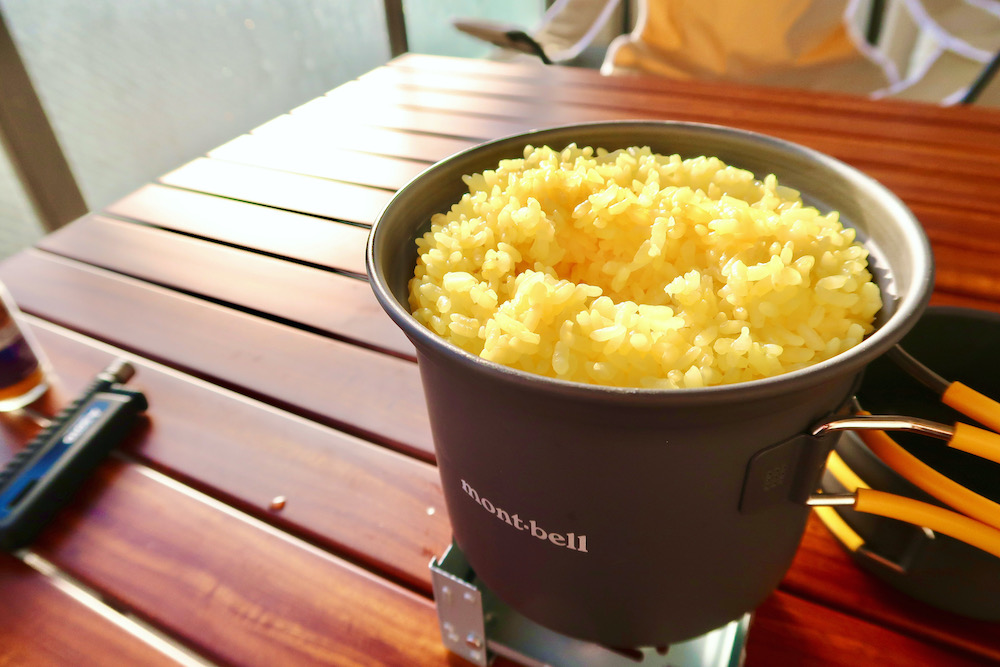 mont-bellのクッカーと固形燃料を使えばだれでも簡単に美味しくお米が炊ける